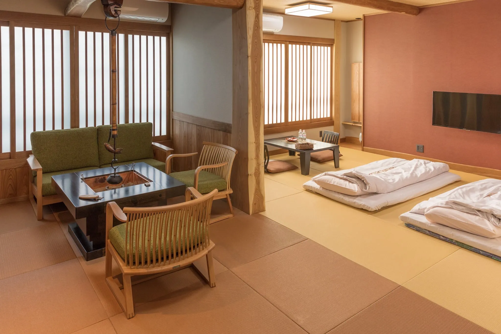 • Spaní v tradičním ryokanu na na futonu položeném jednoduše na rohožích tatami a častá návštěva horkých lázní – onsenů