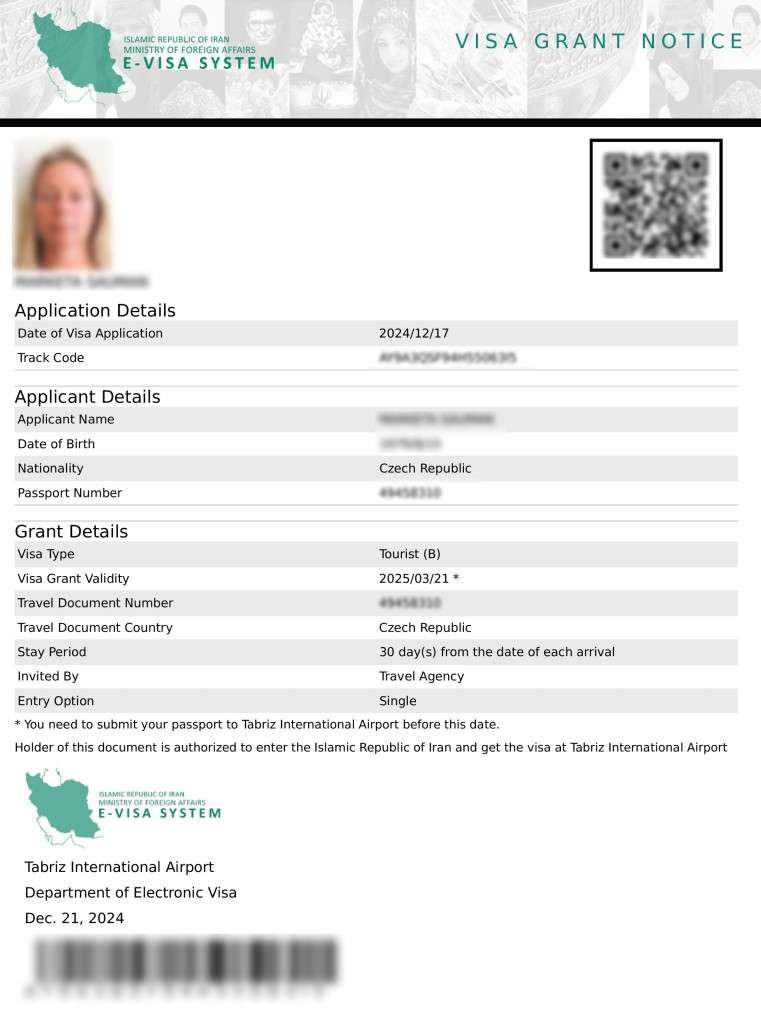 Upozorňujeme cestující, kteří si chtějí vyřídit e-vízum až po příletu do Íránu, že na letišti v Praze a ve Vídni je špatně vyškolený, navíc arogantní personál, který v posledních 12 měsících odmítal některé cestující odbavit k letu na základě platného vízového referenčního čísla. Pokud máte na ref. čísle po naskénování QR kódu hlášku „Application status: Accepted (Not issued)“ je to správně, protože status se změní po příletu do Íránu a zaplacení 75 EUR na „Visa issued“. Pro případ, že se vám to stane, trvejte na správnosti a platnosti dokumentu, kontaktujte svoji aerolinku, odvolávejte se na managery, na IATA pravidla, na fakt, že si letištní personál může zavolat do Teheránu a ověřit si to tam. A i kdyby to nepomohlo, tak chtějte písemné potvrzení, že vás do letadla nepustili i přes platnost všech dokumentů ať můžete pak požadovat kompenzaci. Pokud nechcete zažít dobrodružství na letišti v Praze či Vídni, vyřiďte si vízum na ambasádě Íránu v Praze – podle posledních informací to tam funguje svižně. Odmítnutí boardingu hrozí zejména u Turkish Airlines – tato aerolinka se tupě rozhodla, že nezaplacená ref. čísla neboli Visa Grant Notice k zaplacení a vyřízení víza po příletu do Íránu prostě nebudou uznávat a odmítnou vám boarding.